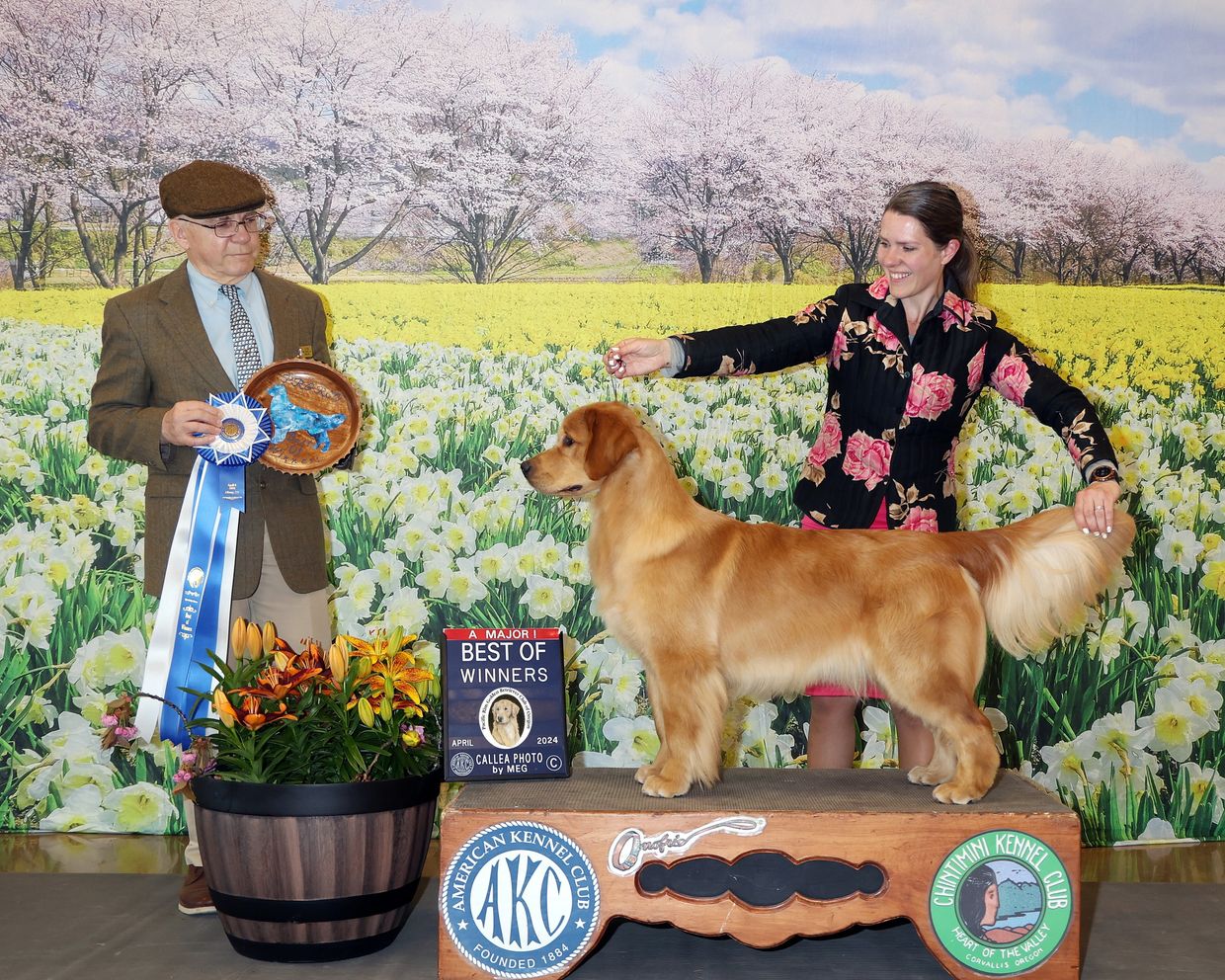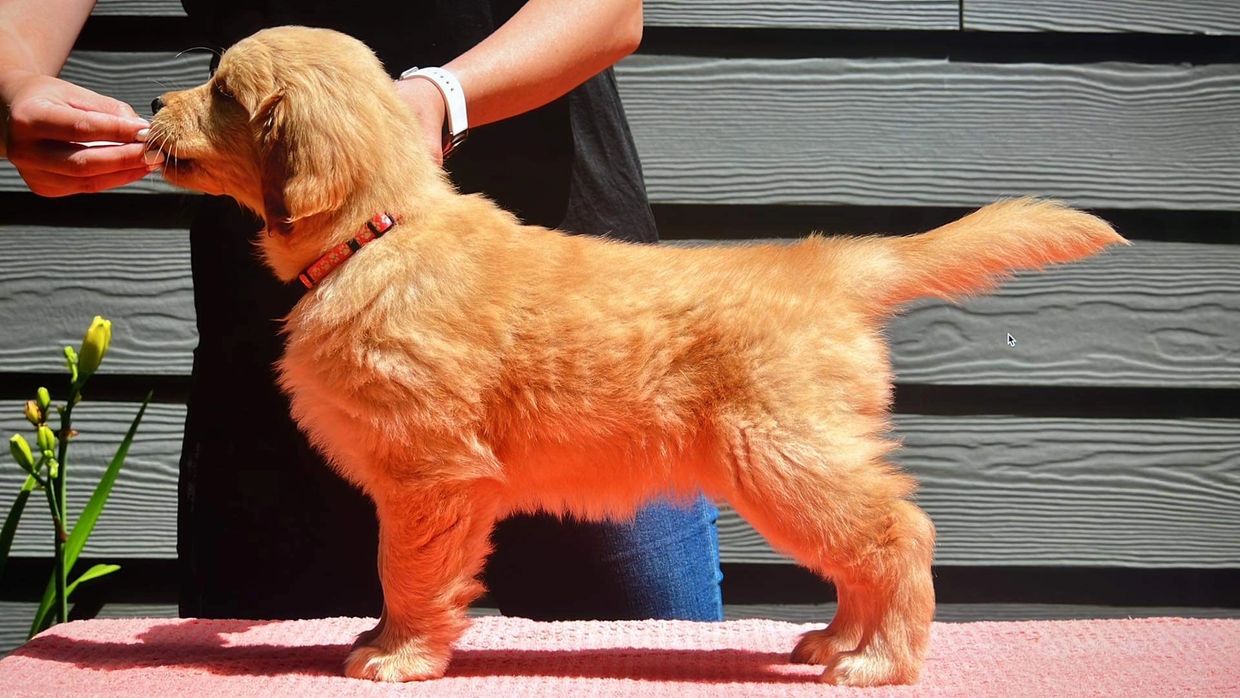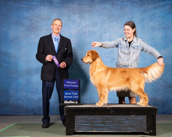 We are extremely excited to see what this girl does in the future. Gracie is out of our Tilly and Mikey breeding. Born in May of 2023, Gracie achieved her first point from the 9-12 class at Silver Falls Kennel Club. We knew she was special from the start, but we were shocked to watch her win her first major in style at the Pacific Rim Golden Retriever Specialty in Albany, Oregon at just shy of 11 months old. We look forward to watching her continue to excel in the ring!!